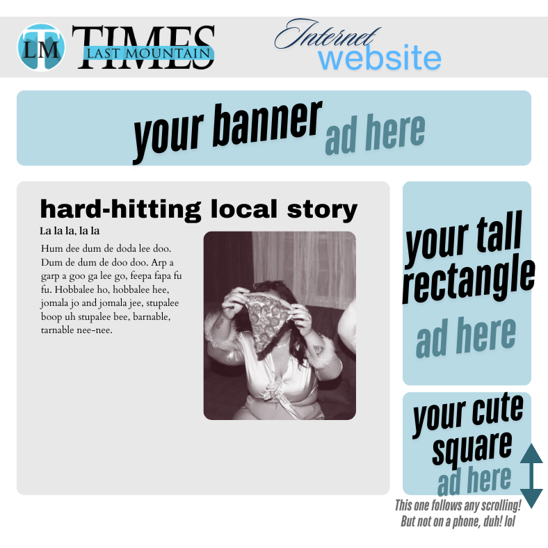 - Website advertising - Ads are available in three sizes and are billed per week. Inquire by email or phone.