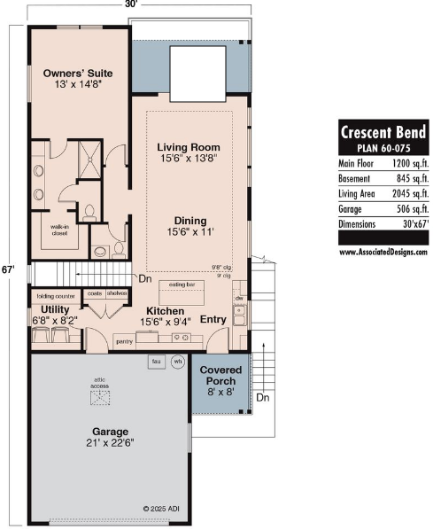 Designed for narrow, downhill-sloping lots, the Crescent Bend is a country-inspired duplex house plan offers a warm, inviting aesthetic paired with exceptional flexibility.