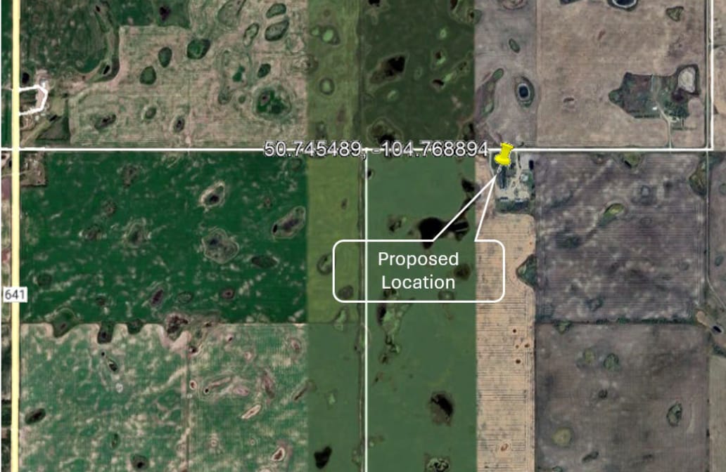 Proposed Tower Location / Emplacement proposé de la tour: NW 31-20-20 W2M, Craven, SK (Title #154655961) Coordinates / Coordonnées: N 50.745489°, W -104.768894°