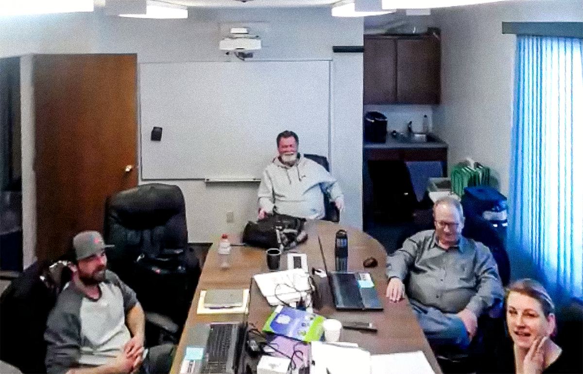 Reeve Bob Schmidt is going to remain in his place around the table after Councillor Arndt suggested he might move to the head of the Council table so Zoom attendees could see him.