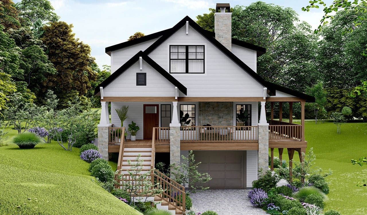 Nestled in the peaceful embrace of nature, the Pinebrook plan is an exquisite cabin-style craftsman home that beautifully combines modern elegance with rustic charm.
