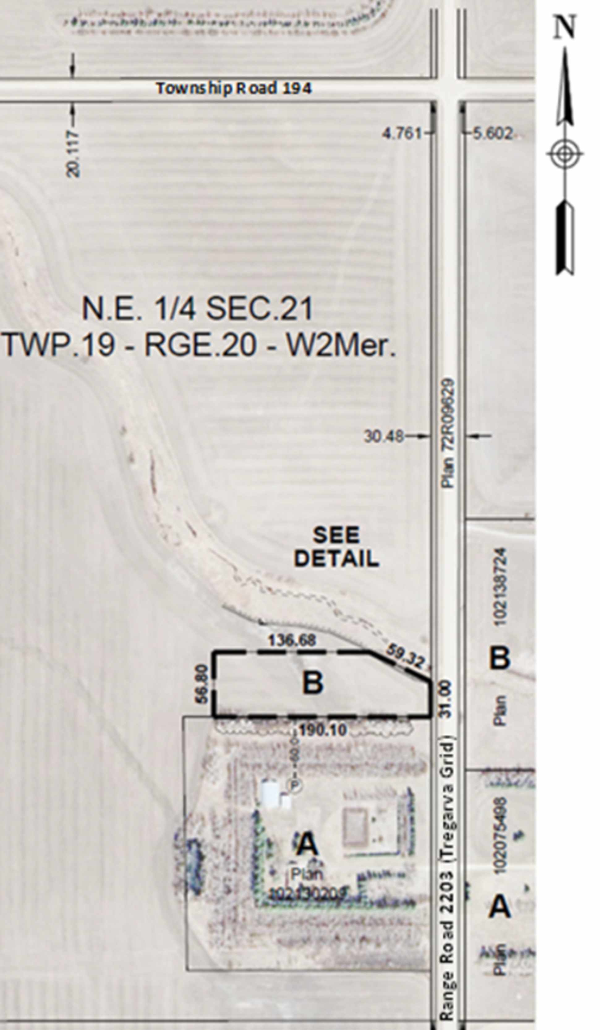 AFFCTED LAND The affected land is legally described as the NE ¼ 21-19-20-W2M Ext.1 and is adjacent to Township Road 194 and Range Road 2203 (Tregarva Grid).