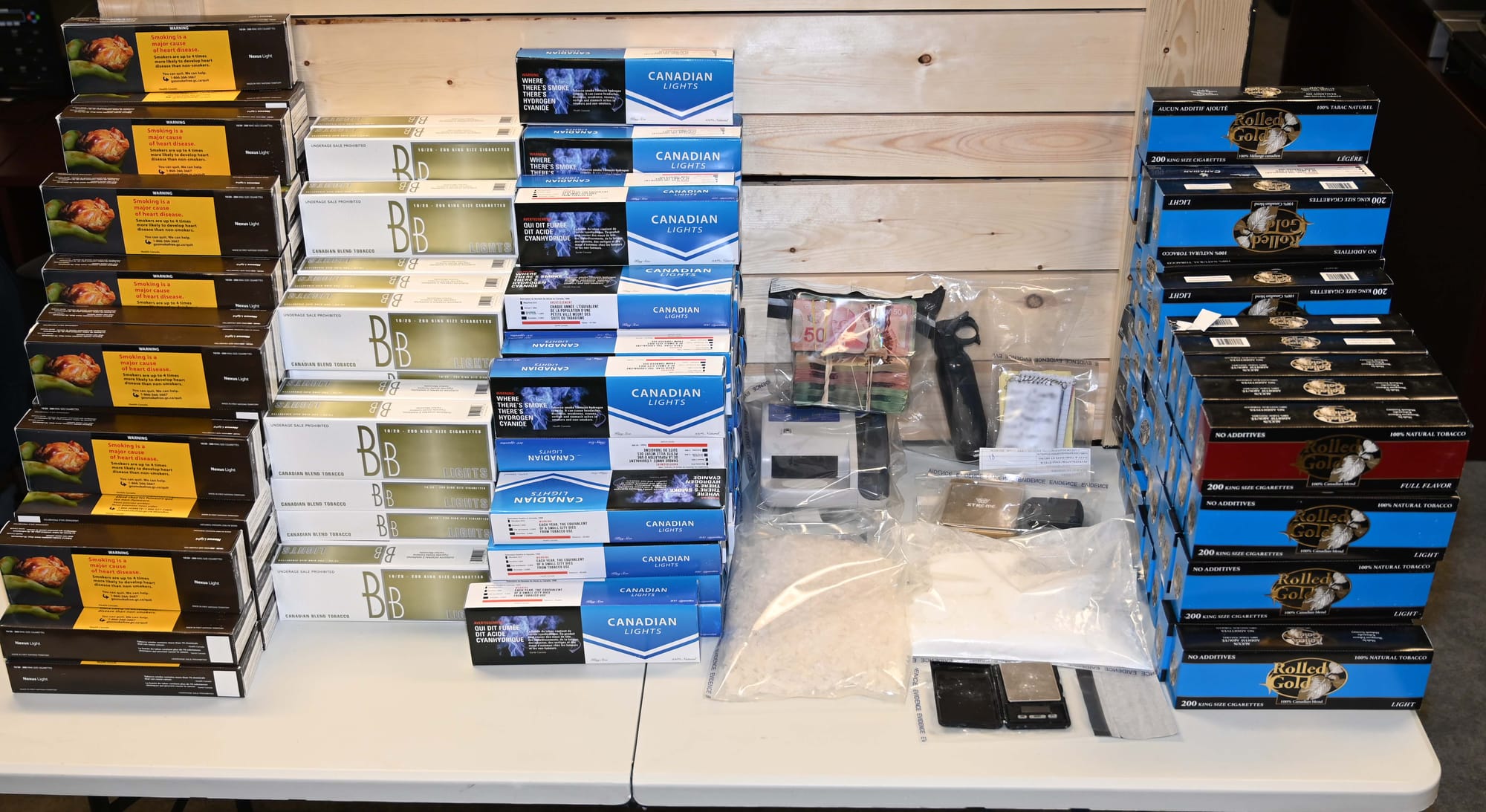 On February 4, 2025, Saskatchewan RCMP executed a search warrant near Humboldt, resulting in a significant drug bust. Officers seized 1,000 grams of methamphetamine, 801 grams of cocaine, 35,000 illegal cigarettes, four firearms, ammunition, bear spray, and drug trafficking paraphernalia from a residence. During a related traffic stop, authorities confiscated approximately $42,245 in cash and additional evidence of drug trafficking.