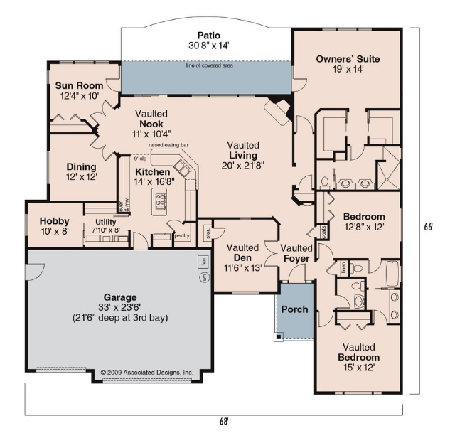 One of the most unique features of the Dalneigh is the V-shaped alcove off the vaulted nook, where two sets of double doors open into a sunroom and a formal dining room. The sunroom includes patio access, providing a versatile space for year-round enjoyment.