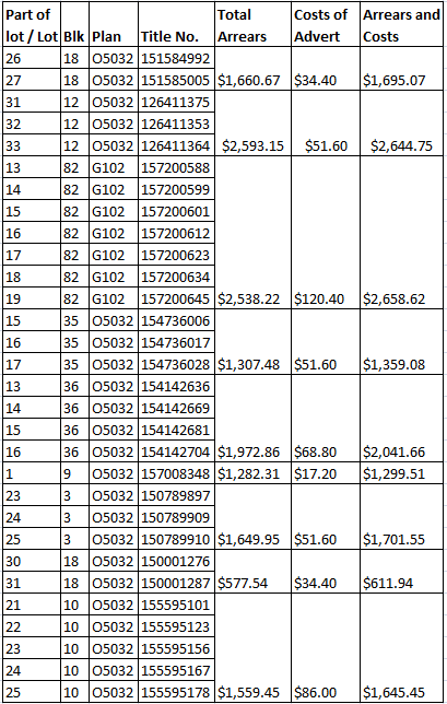 Note: A sum for costs in an amount required by subsection 4(3) of The Tax Enforcement Act is included in the amount shown against each parcel.